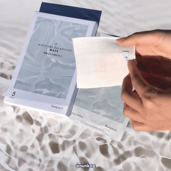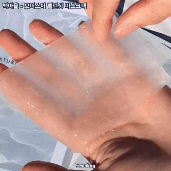 백아율 모이스처 밸런싱 마스크팩 은 투명한 수분에센스를 가득 머금고 있어요