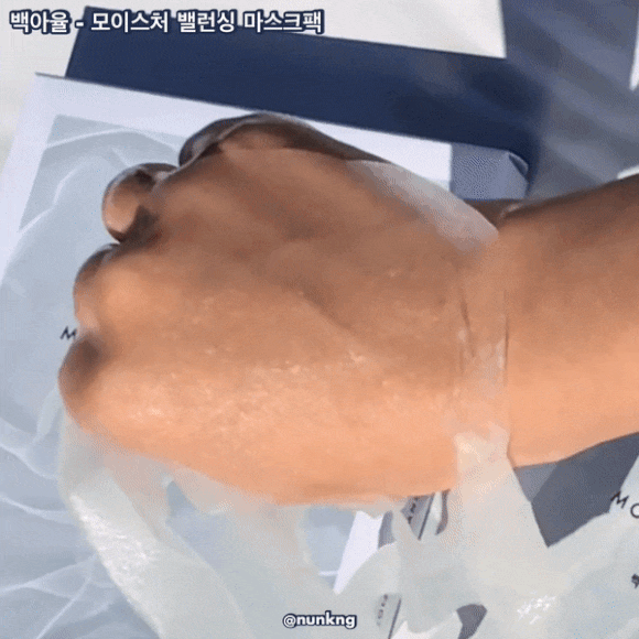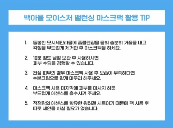 백아율 모이스처 밸런싱 마스크팩 을 붙여줬어요