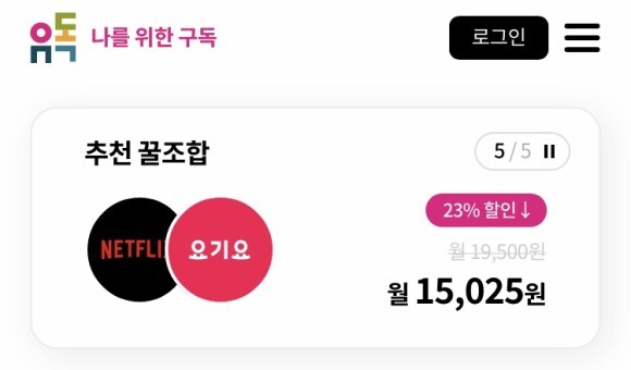 티빙+요기요 를 구독하면 월 구독료가 27% 할인되더라구요