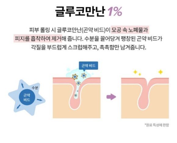 게다가 AHA 와 곤약비드가 각질제거도 해주는데