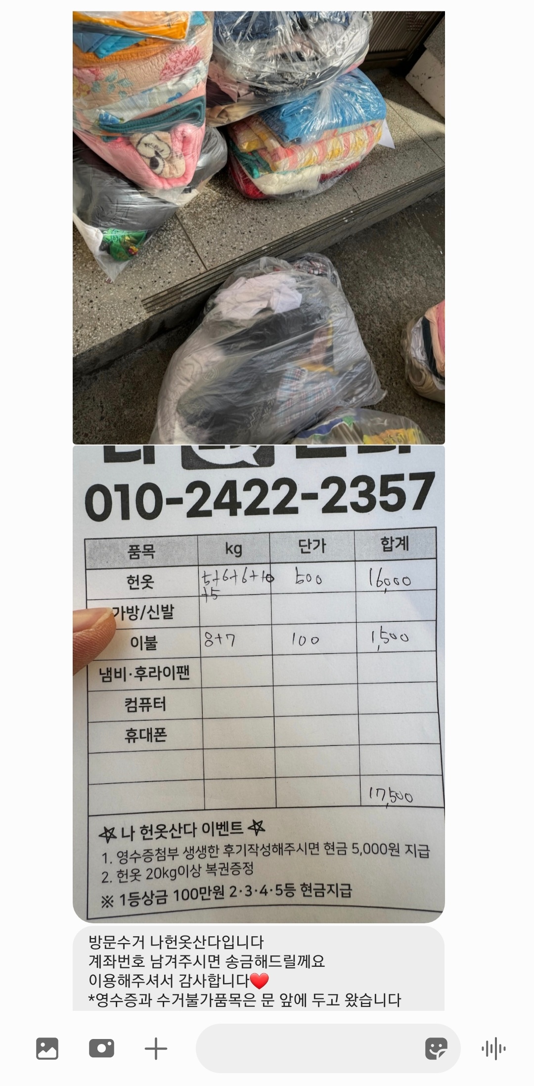 수거해가시는 무게는 20kg만 넘으면 된다고 하셨어요