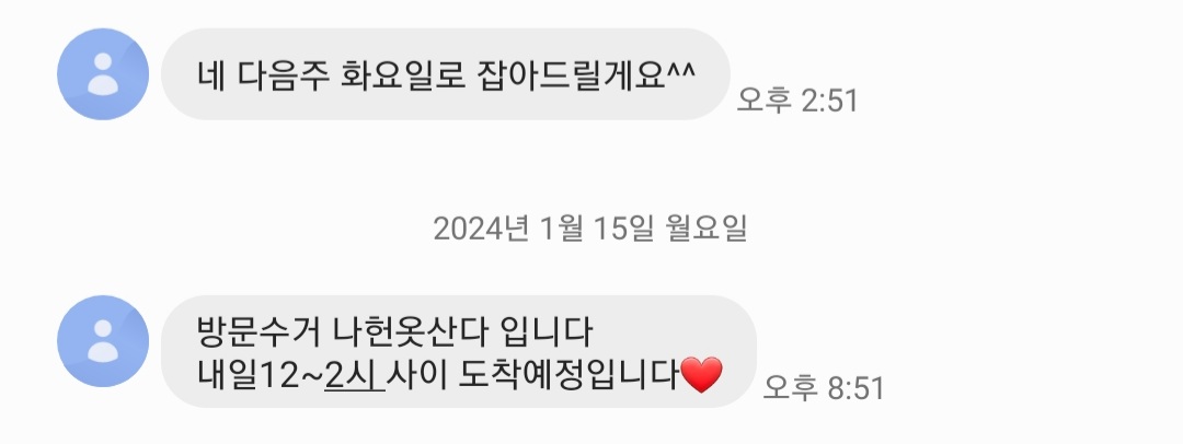 방문 전날 언제쯤 오시는지 알려주시더라구요